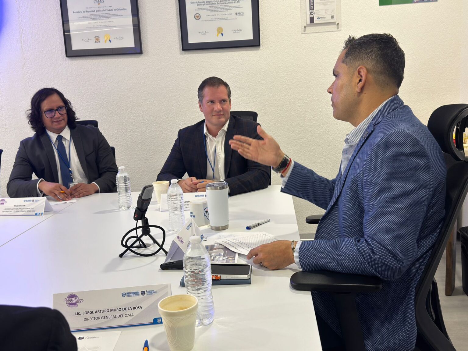 Como parte de la agenda, los representantes académicos dieron un recorrido guiado por el director general del C7-IA, Jorge Muro, en el Centro de Mando, donde conocieron el funcionamiento de la plataforma, el uso de cámaras y el trabajo de los analistas, lo que permitirá robustecer sus investigaciones con información de primera mano.