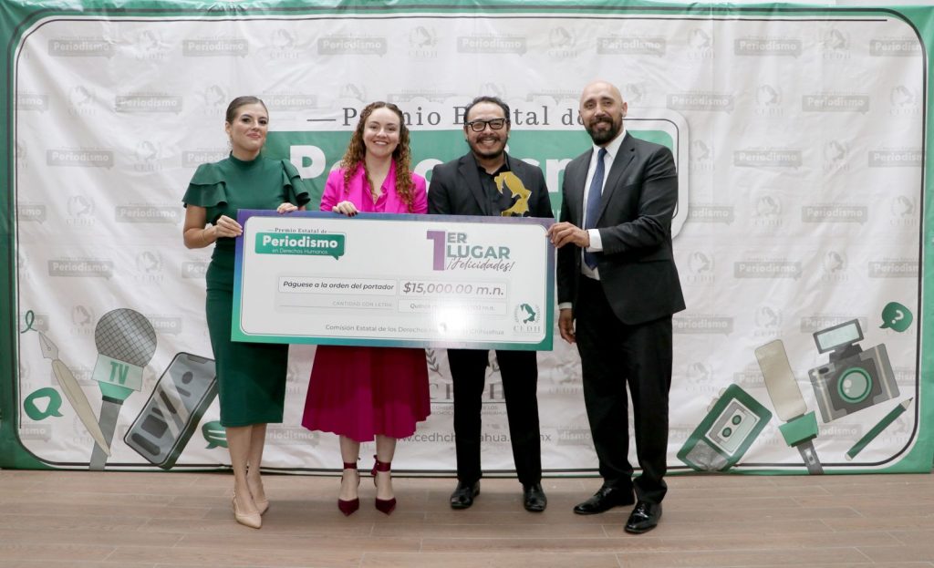 Alejandra Sánchez Escobedo, El Diario de Chihuahua, categoría Prensa escrita, “El día a día en el negocio del sexo/Así saqué adelante a mi familia”; Diego Alberto Villa Hernández, El Diario de Chihuahua, categoría Prensa Escrita, “Sigue tragedia de cuerpos abandonados”; Héctor Hugo Viveros Martínez, Multimedios- Canal 6, categoría Televisión, “Familias dudan de las cenizas recibidas, ¿son realmente sus seres queridos?”; Edson Alan Calderón Pérez, Multimedios-Canal 6, “Sueños en pausa”; Héctor Francisco Servín Romero, circuitofrontera.com, categoría Fotoperiodismo “Travesía por Ayotzinapa, un recuento” y Héctor Saavedra García, servisible.mx, categoría Plataforma digital, “Ver con el alma: la inspiradora historia de César, un luchador de la oscuridad”.