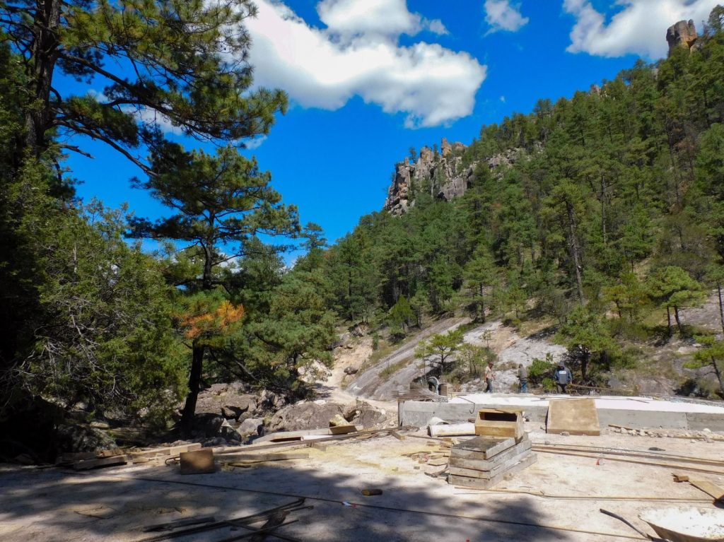 El Gobierno del Estado, a través de la Secretaría de Turismo informa que las obras de construcción de los dos puentes vehiculares que darán acceso a la Cascada de Cusárare, registran un 65 por ciento de avance y se prevé su conclusión antes de finalizar el año