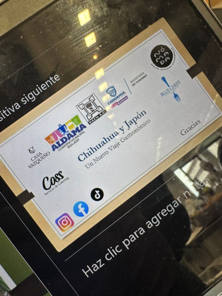 Durante la clase magistral en las aulas niponas estuvieron presentes productos de Chihuahua como “El Nómada”, “Casa Vasqueño”, ,el Municipio de Aldama, Blue Chefs.