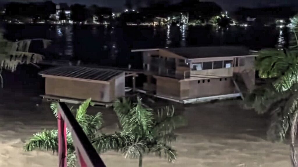 La noche del viernes 10 de octubre, la furia del agua del río Tuxpan se desbordó, alcanzando una elevación preliminar de más de siete metros, y arrasó por completo con el emblemático restaurante de mariscos “El Atracadero”.