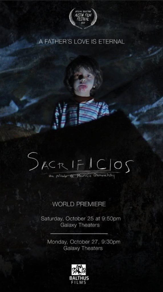 “Sacrificios, como sugiere el título, es una película que me exigió más que cualquier otro proyecto – emocional, físicamente, creativamente. Y después de años en incubación, estoy agradecido de que finalmente esté emergiendo en el mundo. ¡Únete a nosotros en el Austin Film Festival para su estreno mundial! Estaremos proyectando en Galaxy Cinemas el sábado, 25 de octubre a las 9:50 PM y nuevamente el lunes a las 9:30 PM” destaca su director Mauricio Chernovetzky.