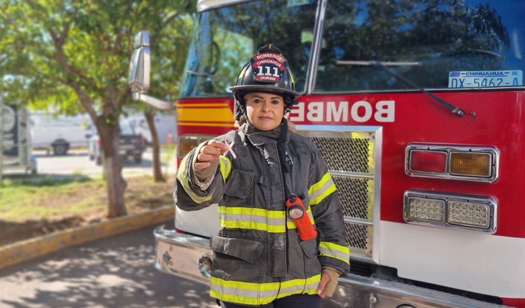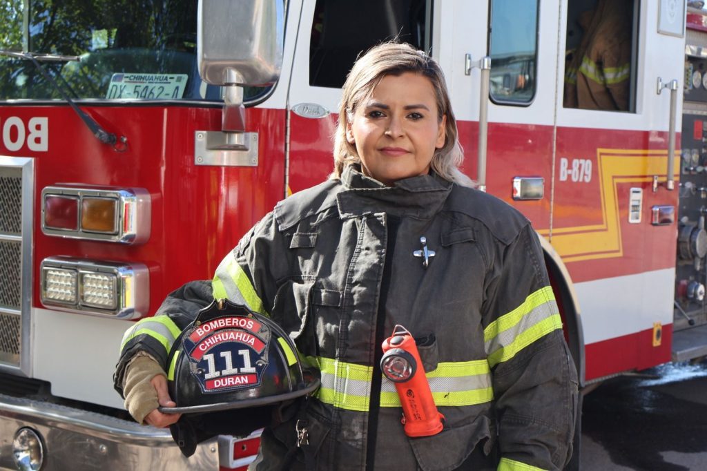 Sandra Durán , cuenta con 14 años de antigüedad en el H. Cuerpo de Bomberos de Chihuahua y actualmente tiene el grado de bombero segundo, se define como una guerrera, una luchadora que sobrevivió al cáncer de mama y la transformó en una persona fuerte, más cuando recuerda la frase que le han repetido: “si pudiste con eso puedes con todo.”
