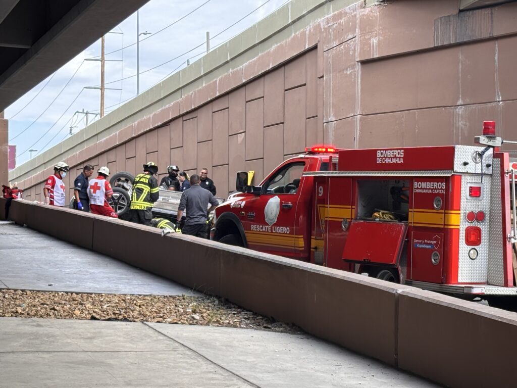 Un fuerte accidente se registró la mañana de este viernes sobre el Periférico de la Juventud, a la altura de la Vía Sicilia y frente a D1, luego de que un vehículo Nissan Sentra cayera desde un puente hacia una salida. El conductor, un hombre adulto mayor, resultó lesionado y quedó atrapado dentro del automóvil, que terminó completamente destrozado.