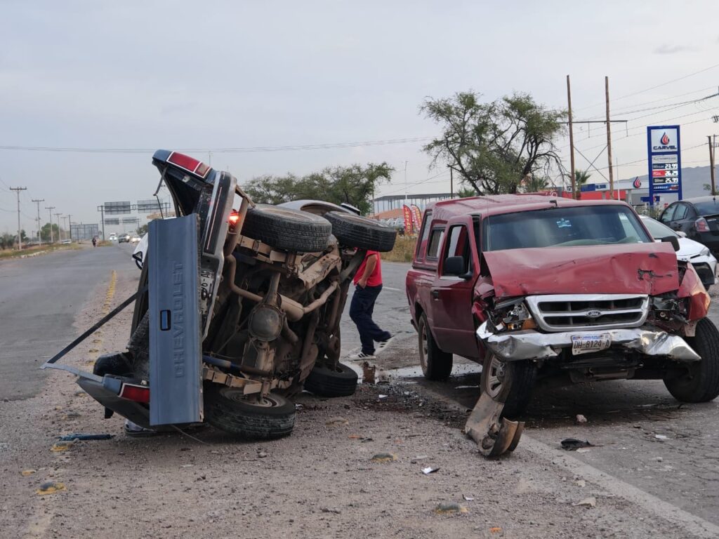 La mañana de este viernes se registró un fuerte accidente sobre la carretera Aldama–Chihuahua, a la altura del kilómetro 15+500, frente al fraccionamiento residencial Los Leones. El conductor de una camioneta Chevrolet S10 resultó gravemente herido luego de ser impactado por otra pick up cuando intentaba ingresar al fraccionamiento, provocando que la unidad saliera proyectada varios metros.