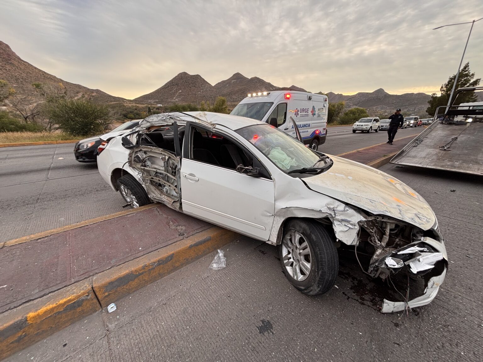 Paramédicos de URGE acudieron al lugar y brindaron atención médica al conductor del Altima, un hombre de aproximadamente 45 años, quien presentaba lesiones de consideración y fue trasladado al hospital Morelos para su atención.