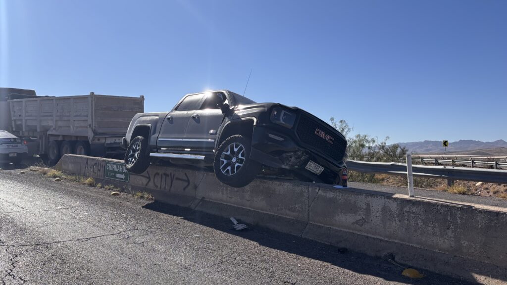 La mañana de este sábado, dos adultos mayores que viajaban en una camioneta GMC Sierra de color negro terminaron sobre un muro de contención, cerca de la Puerta de Chihuahua, luego de que el conductor se confundiera de camino y perdiera el control de la unidad. El hecho generó la movilización de cuerpos de emergencia en la zona.