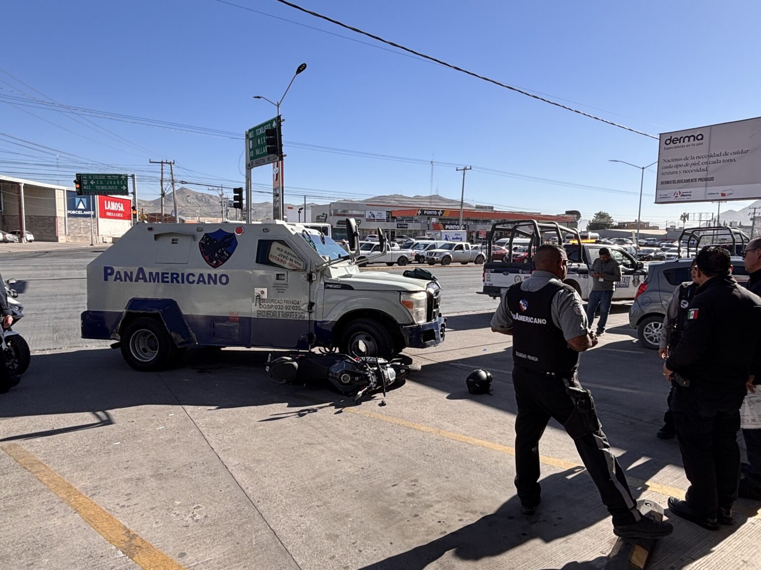 Motociclista resulta lesionado tras chocar contra camión de valores en la Tecnológico