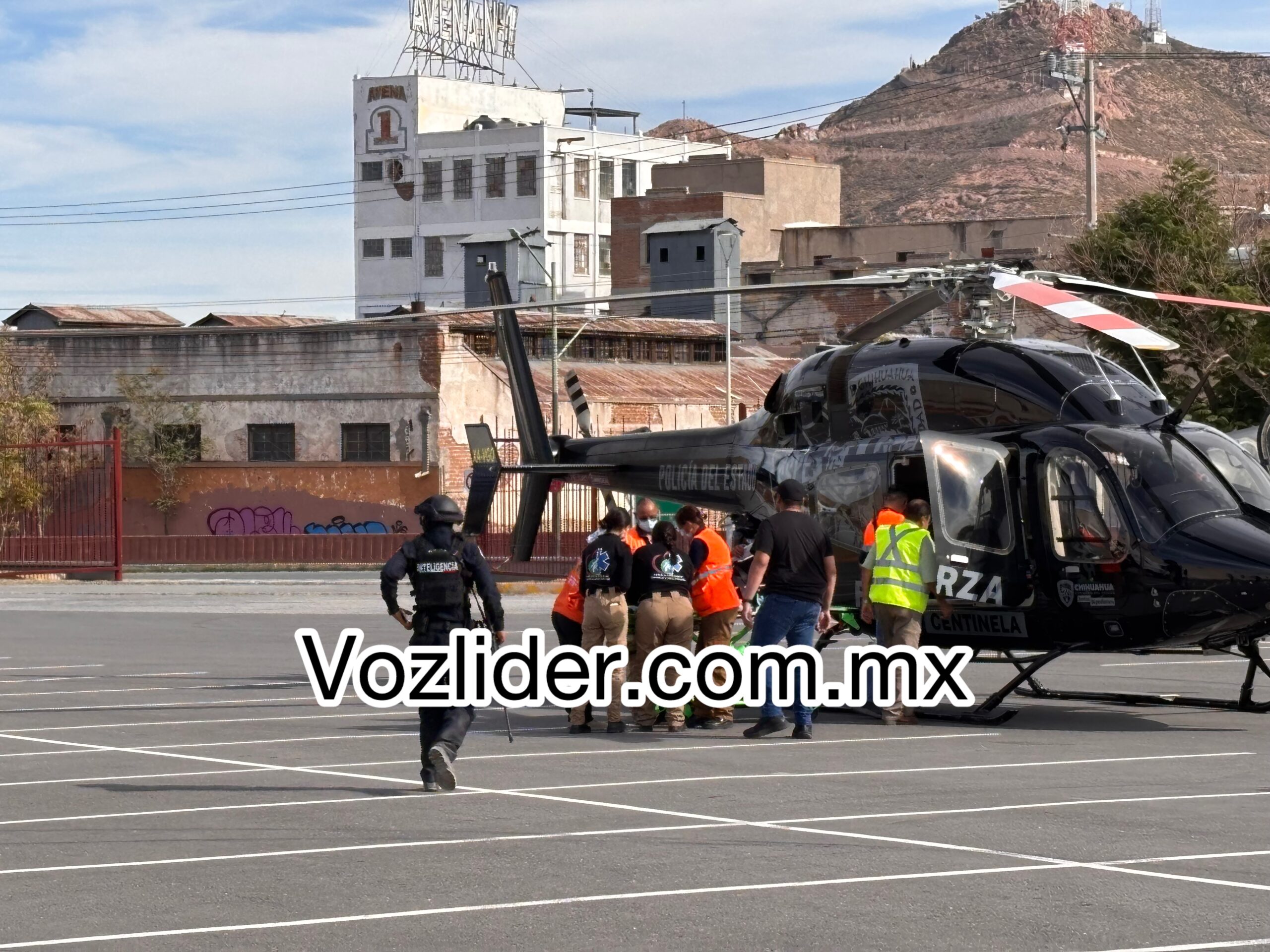 El helicóptero de la SSPE aterrizó alrededor de las 14:30 horas en el estacionamiento del Centro de Convenciones de Chihuahua, donde ya se encontraban unidades de la Policía Vial, Policía Estatal y paramédicos de URGE para recibir al lesionado.