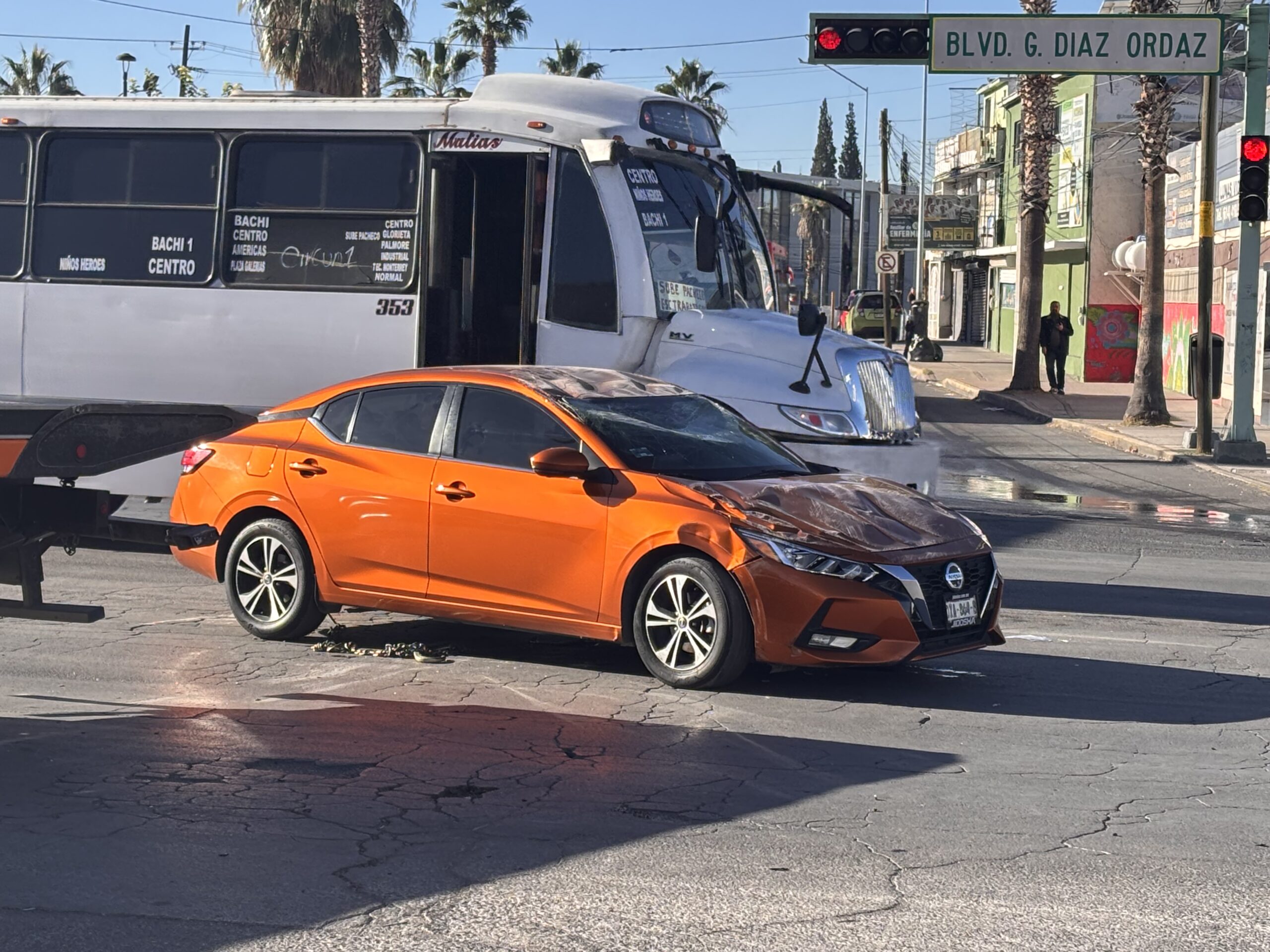 El incidente ocurrió en el cruce de las calles Victoria y Bulevar Díaz Ordaz, donde un Nissan Sentra de modelo reciente sufrió un impacto que ocasionó que volcara, quedando con daños materiales de consideración. A pesar de lo aparatoso del accidente, no se reportaron personas lesionadas.
