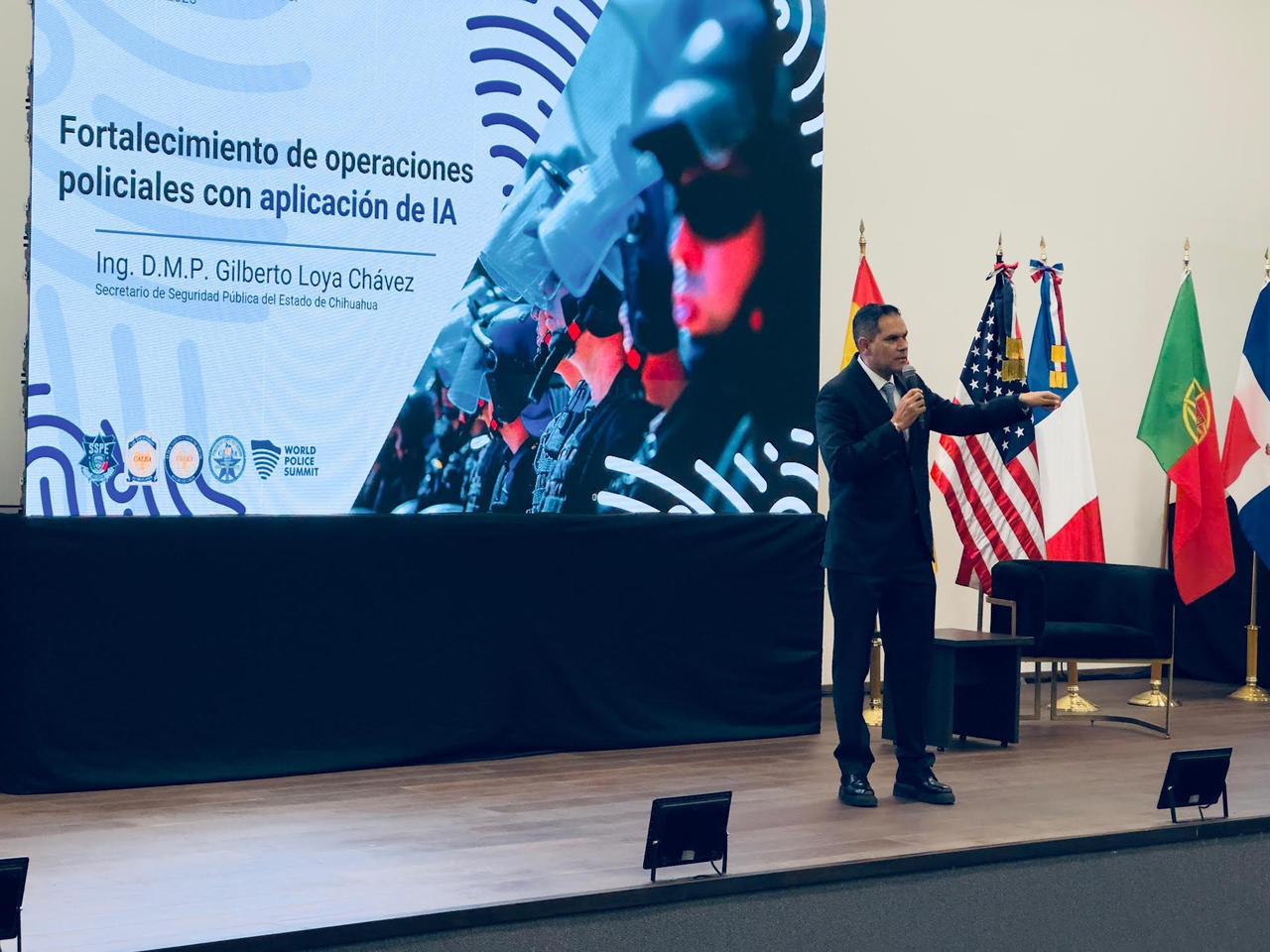 El secretario de Seguridad Pública del Estado, Gilberto Loya Chávez, participó en el Primer Congreso Internacional de Inteligencia Policial y Criminal, celebrado en Monterrey, Nuevo León, donde presentó los avances y resultados alcanzados en Chihuahua a través de la implementación de tecnología y de inteligencia artificial en el modelo de seguridad pública.