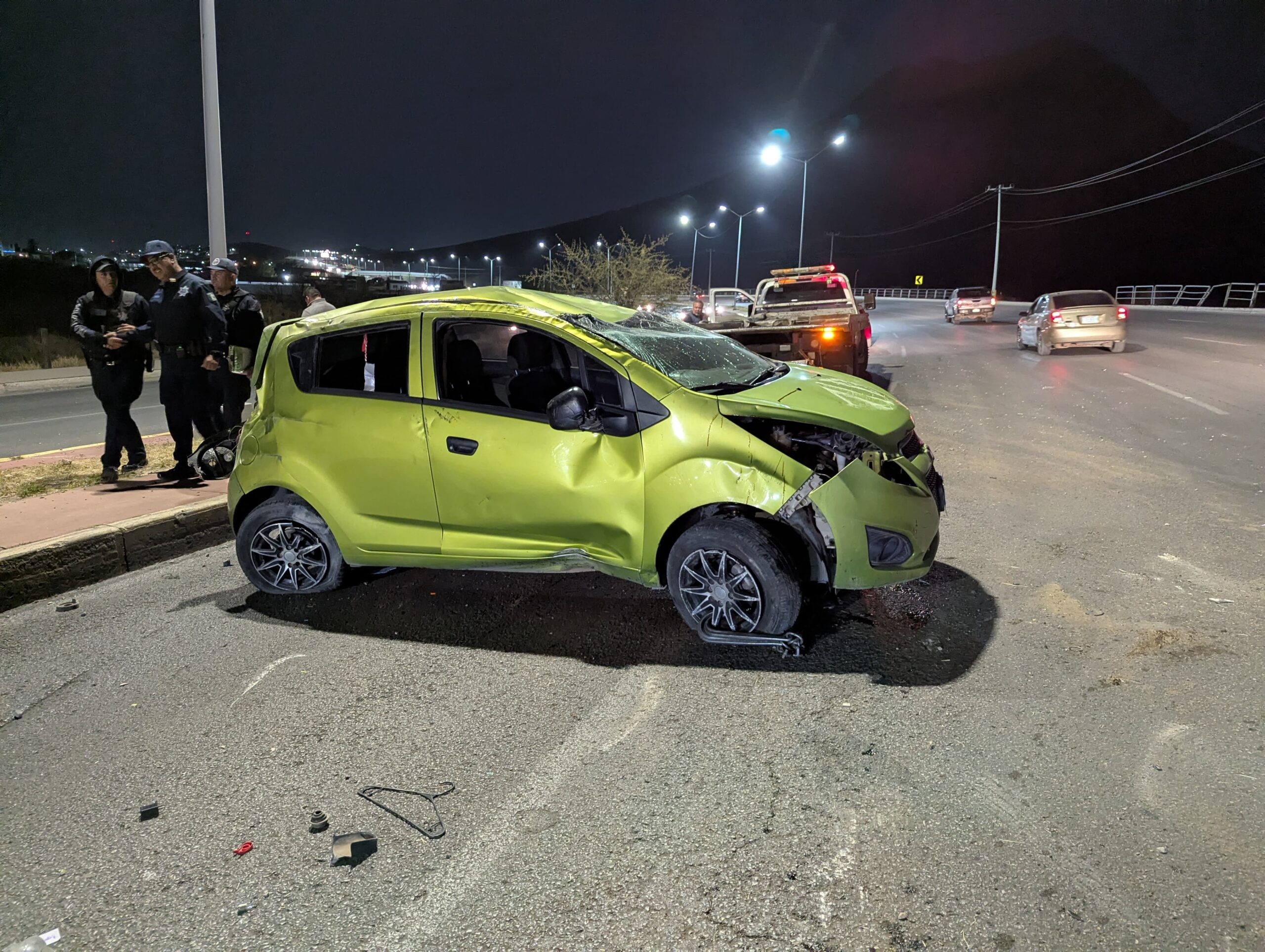 Tres personas resultaron lesionadas tras la volcadura de un vehículo registrada la tarde de este jueves sobre el periférico R. Almada, luego de que el conductor perdiera el control del volante y se brincara el camellón central.