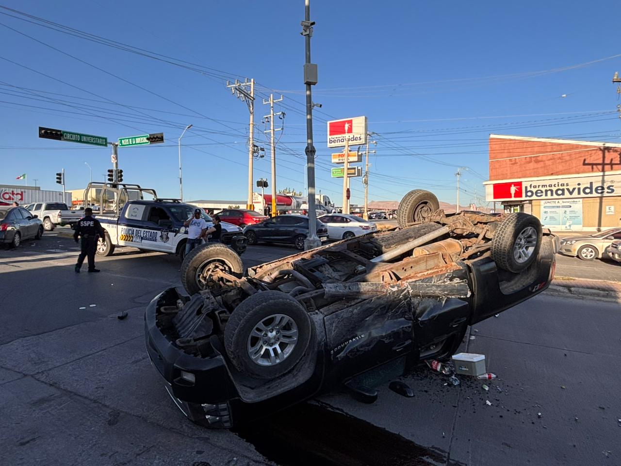 Un aparatoso accidente vial se registró en el cruce de las calles Paseos de la Universidad y Circuito Universitario, luego de que el conductor de una camioneta Chevrolet Silverado se pasara el semáforo en rojo y provocara un choque que terminó en volcadura, dejando como saldo tres personas lesionadas.