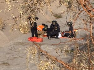 Un hombre de alrededor de 50 años de edad fue rescatado por cuerpos de emergencia luego de caer a un canal de aproximadamente 10 metros de profundidad, donde sufrió fracturas en ambas piernas debido al fuerte impacto.