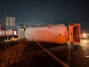 Una pipa perteneciente a la empresa Gas Económico volcó la tarde de este viernes a la altura del kilómetro 208 de la carretera Chihuahua–Delicias, justo frente a las instalaciones de la propia gasera, lo que generó la movilización de cuerpos de emergencia ante el posible riesgo que representaba la unidad.