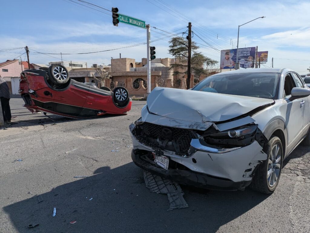 Un fuerte accidente vial se registró la tarde de este martes en el cruce de las avenidas Ortiz Mena y Francisco Villa, luego de que el conductor de una camioneta Mazda omitiera la luz roja del semáforo, lo que derivó en la volcadura de otra unidad y cuantiosos daños materiales.