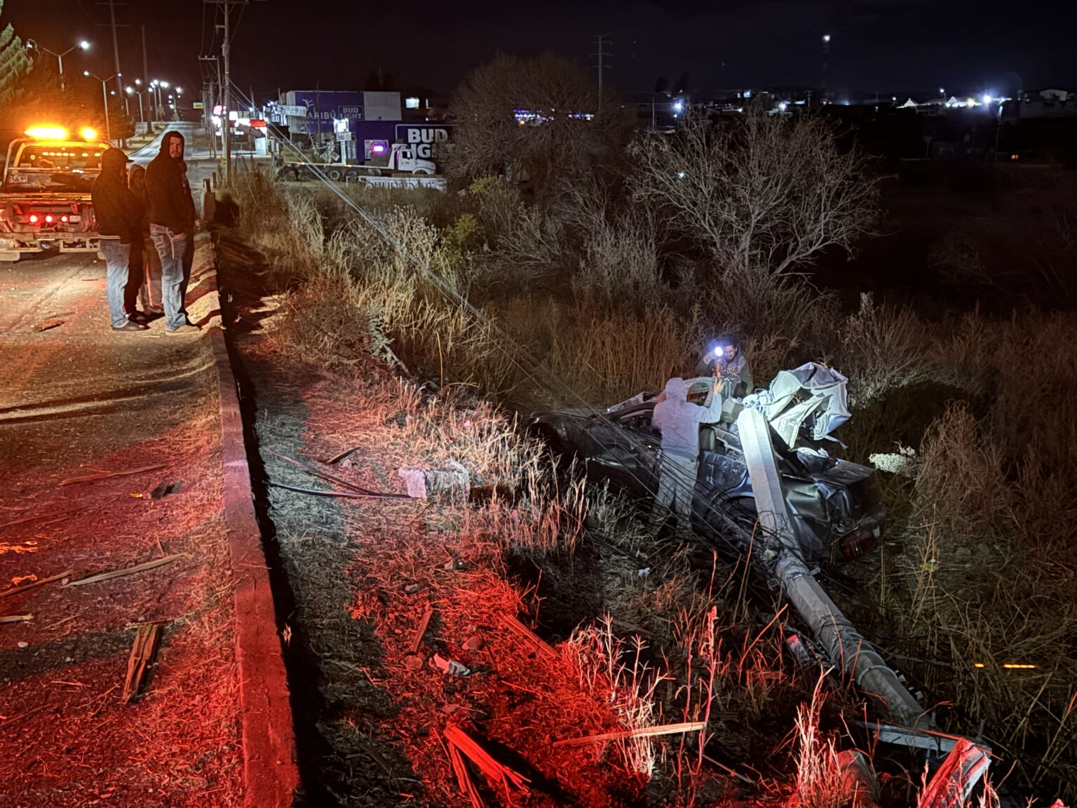 De acuerdo con los primeros reportes, el vehículo se impactó contra un poste de la Comisión Federal de Electricidad (CFE), el cual fue derribado, para posteriormente salir del camino y caer a un arroyo ubicado a un costado de la vía.