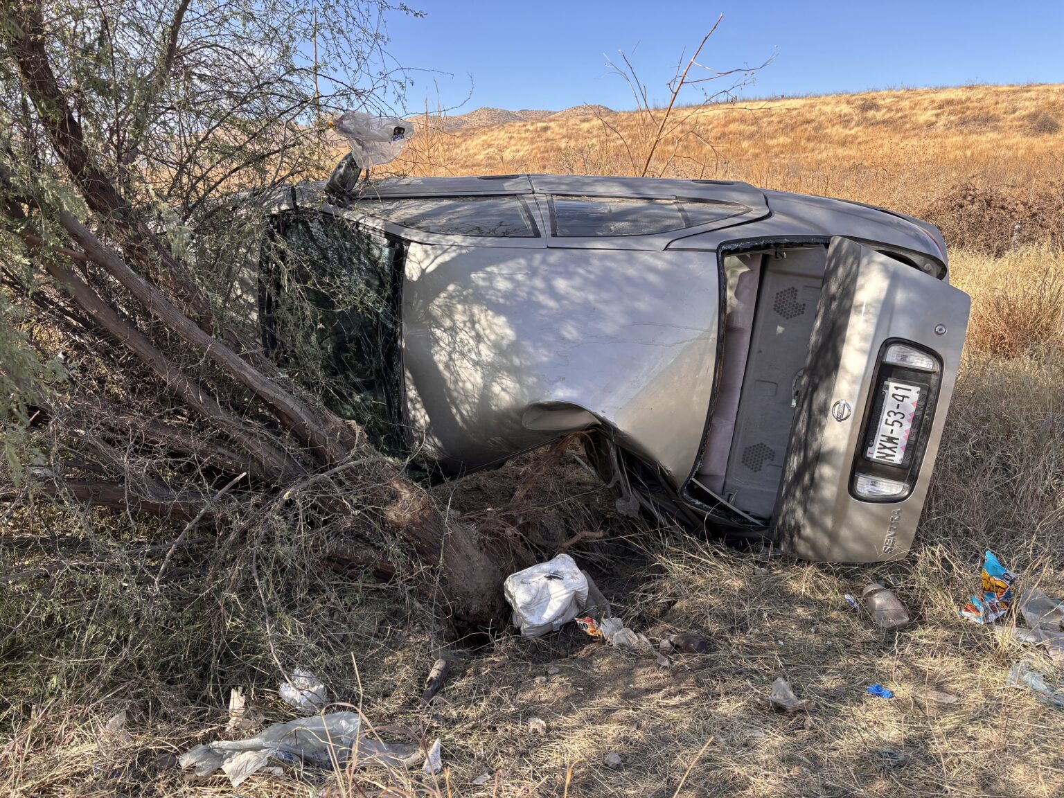 El vehículo Nissan Sentra, al impactar de costado contra el Mesquite, quedó totalmente destrozado. A pesar del aparatoso del incidente, no se reportaron lesiones de consideración.