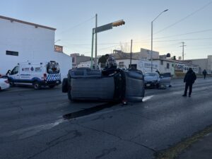 El accidente ocurrió en el cruce de la avenida José María Iglesias y la calle Antonio Labastida, dónde dos unidades colisionaron, provocando que uno de los automóviles quedara volcado sobre la vía.