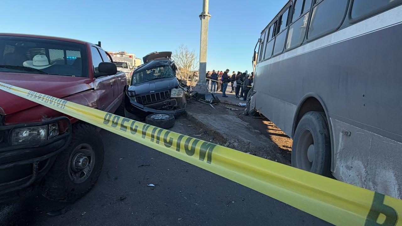 Un aparatoso choque entre un camión urbano y una camioneta tipo Cherokee dejó como saldo una persona fallecida y al menos 19 lesionados, la tarde de este jueves en el cruce de las avenidas Fuentes Mares y R. Almada, al sur de la ciudad, lo que provocó un amplio despliegue de cuerpos de emergencia.