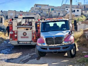 Elementos del Cuerpo de Bomberos acudieron al sitio tras el reporte de un tanque de 10 kilos envuelto en llamas, logrando controlar el incendio de manera oportuna y evitar mayores daños materiales.
