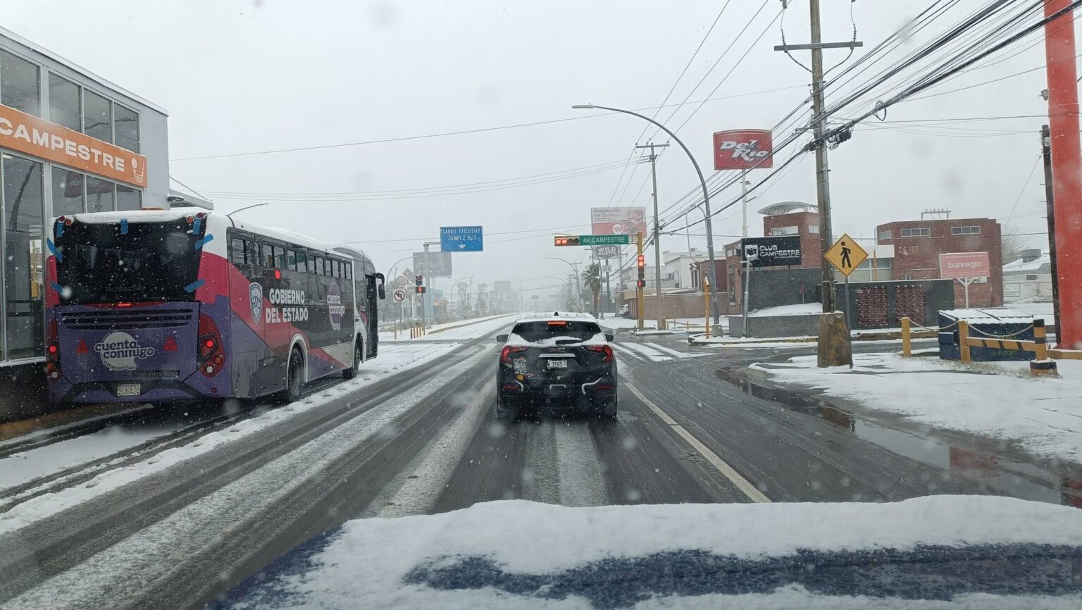 La nieve comenzó a caer la mañana de este domingo en distintos sectores de Ciudad Juárez, cubriendo de blanco vehículos y vialidades, principalmente en colonias como Álvaro Obregón y Hacienda de los Nogales, donde se reportó una acumulación ligera.