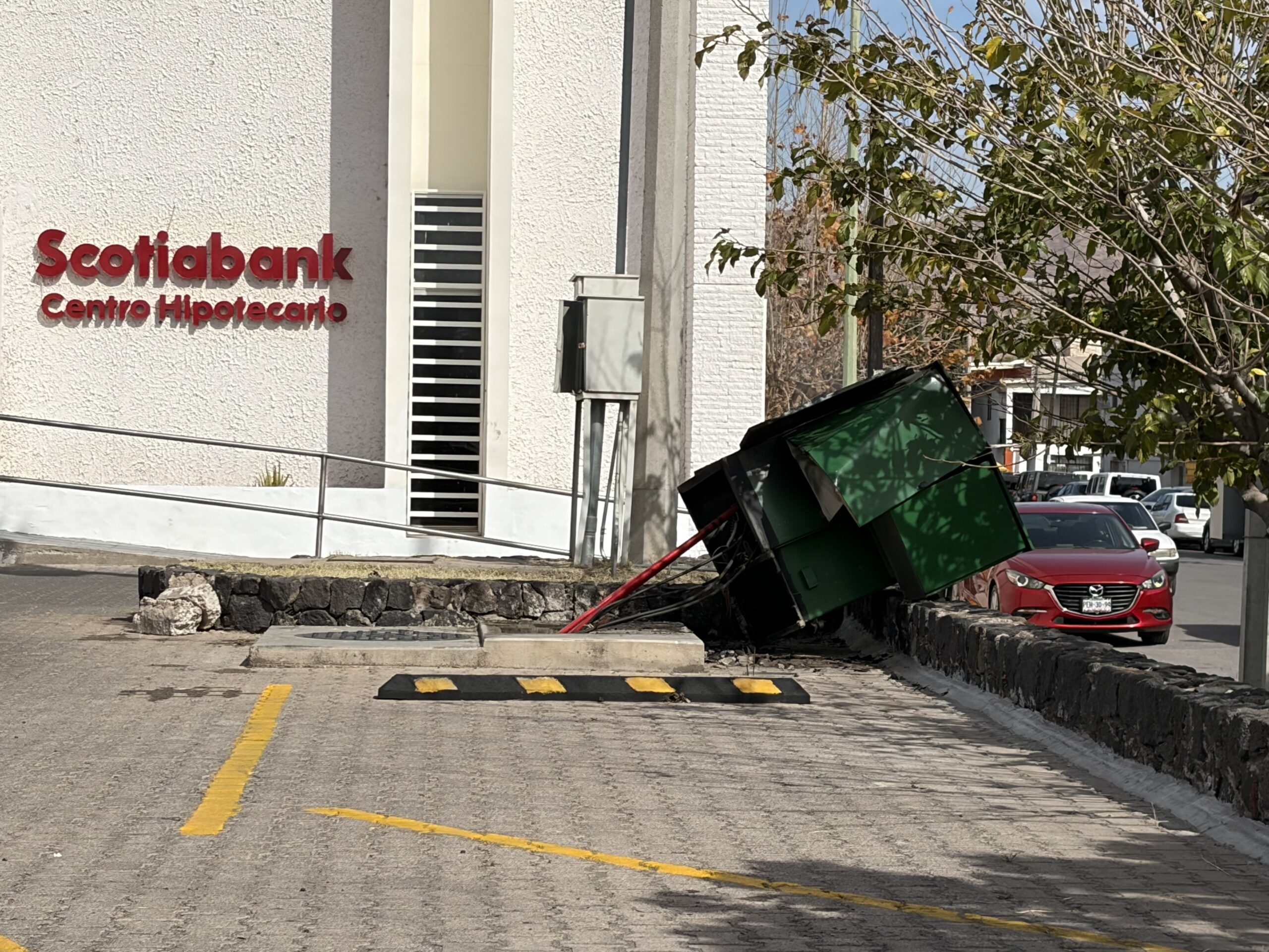 Un accidente vehicular se registró al norte de la ciudad luego de que el conductor de una camioneta Chevrolet, de modelo atrasado, presuntamente confundiera el freno con el acelerador, impactándose contra un transformador de 440 volts ubicado al exterior de una institución bancaria.