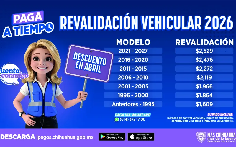 La Revalidación Vehicular se puede pagar a través de las Recaudaciones de Rentas en un horario de lunes a viernes de 8:00 de la mañana a 4:00 de la tarde, en Chihuahua y Juárez.