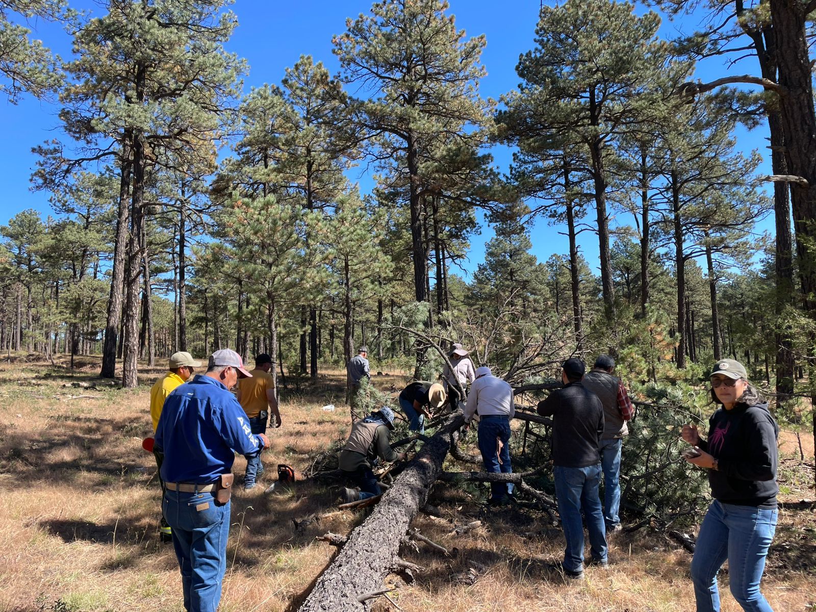 Como parte de los trabajos, se realizaron recorridos de campo para identificar brotes activos, evaluar el nivel de afectación y definir áreas prioritarias de atención, en coordinación con la Comisión Nacional Forestal (Conafor), técnicos especializados, comisariados ejidales y propietarios forestales.