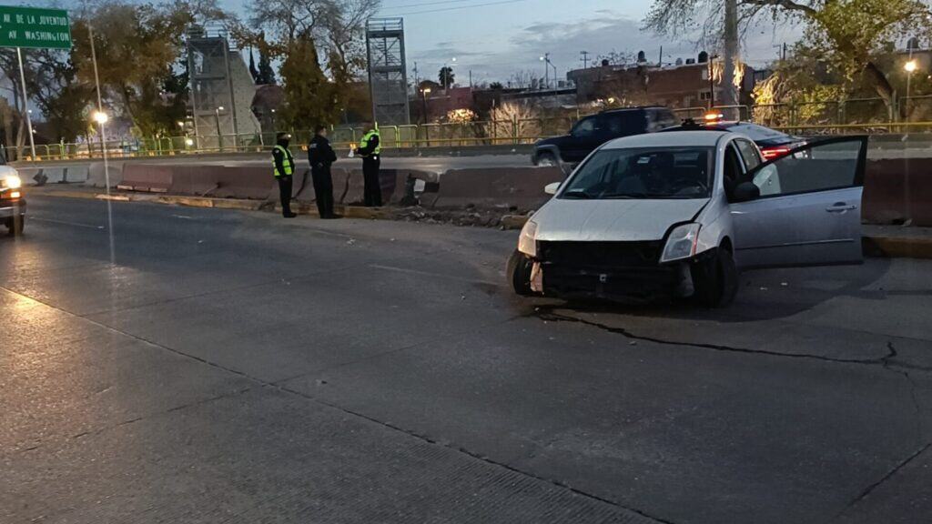 Chihuahua, Chih.— Un accidente automovilístico registrado en la avenida La Cantera generó la movilización de autoridades viales, luego de que una conductora perdiera el control de su vehículo y se impactara contra un muro de contención, sin que se reportaran personas lesionadas.