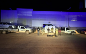Asimismo, fue asegurado un vehículo Kia Soul modelo 2022, color azul, con reporte de robo interpuesto el 11 de agosto de 2025 en la ciudad de Chihuahua; un Honda Civic gris con placas sobrepuestas y una camioneta Jeep Cherokee modelo 2008, color plata.