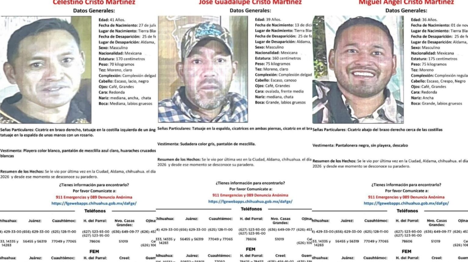Regresan con vida los 3 hermanos “levantados” en Aldama
