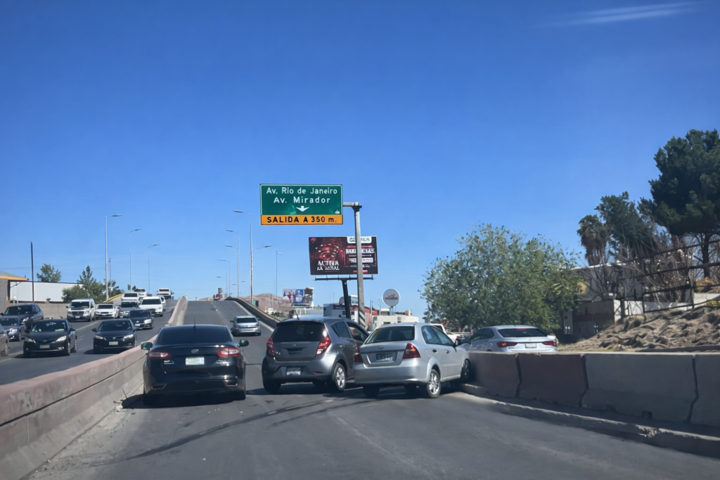 Chihuahua, 27 de febrero de 2026 – Un accidente vial registrado la tarde de este jueves en la curva de la avenida La Cantera, en dirección hacia el centro de la ciudad, generó un fuerte congestionamiento vehicular y obligó a los automovilistas a extremar precauciones.