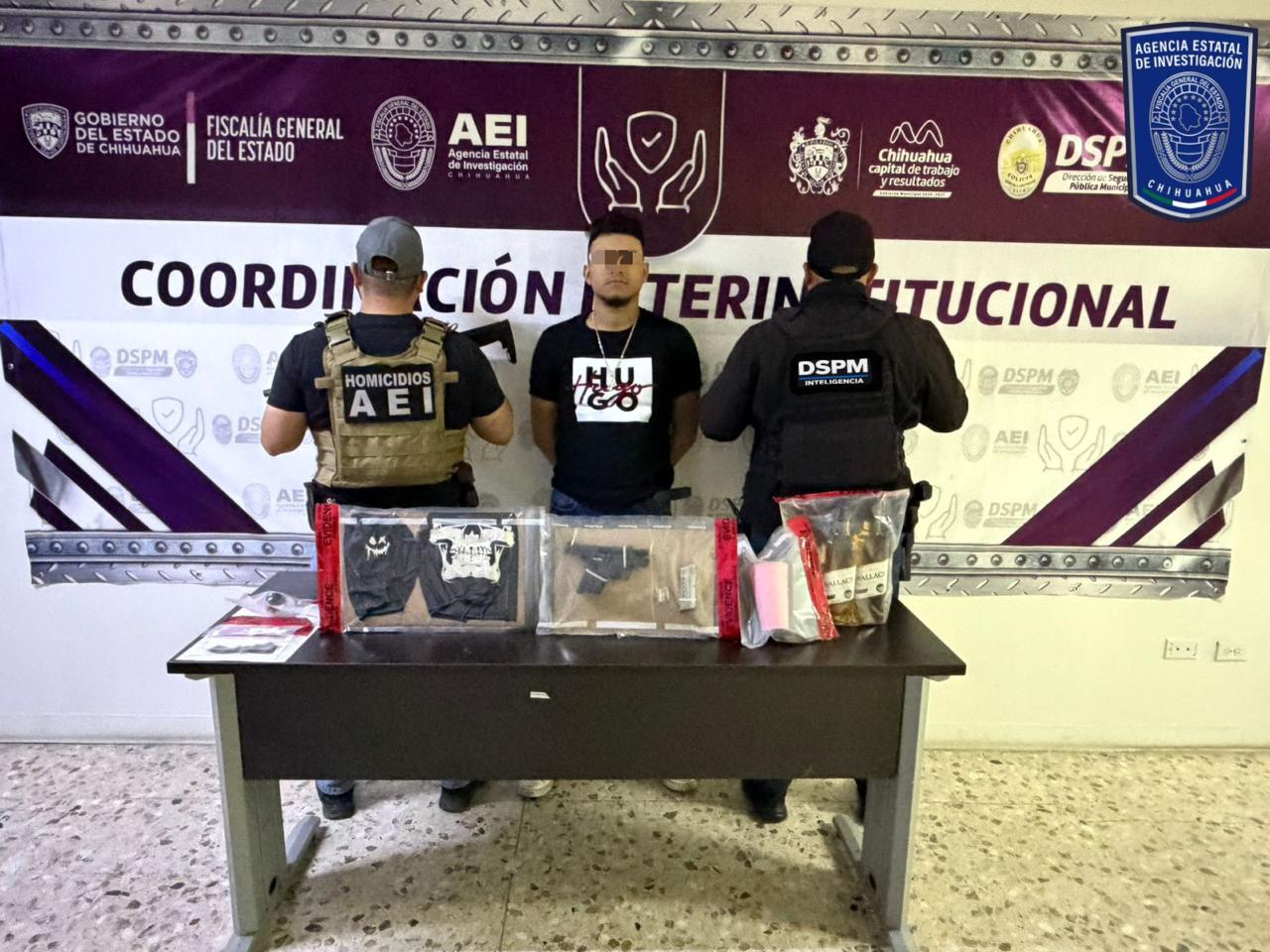 La detención en flagrancia se realizó la noche del viernes en la Avenida Transformación, cruce con calle Molino Salveiro, en el Fraccionamiento Molino de Agua, en la ciudad de Chihuahua. La acción fue llevada a cabo por agentes de la Unidad de Investigación de Delitos contra la Vida en coordinación con elementos de la Dirección de Seguridad Pública Municipal.