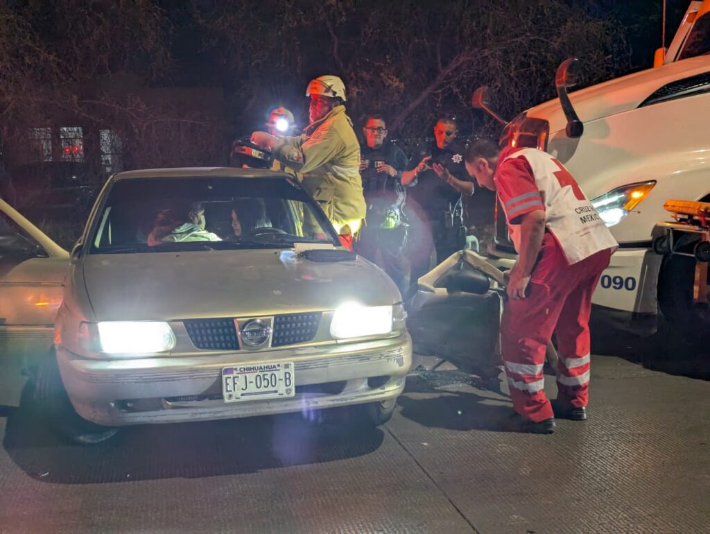 El accidente ocurrió en el sentido de circulación de Chihuahua hacia Aldama, cuando la conductora de un Nissan Tsuru gris intentó cambiar de carril.