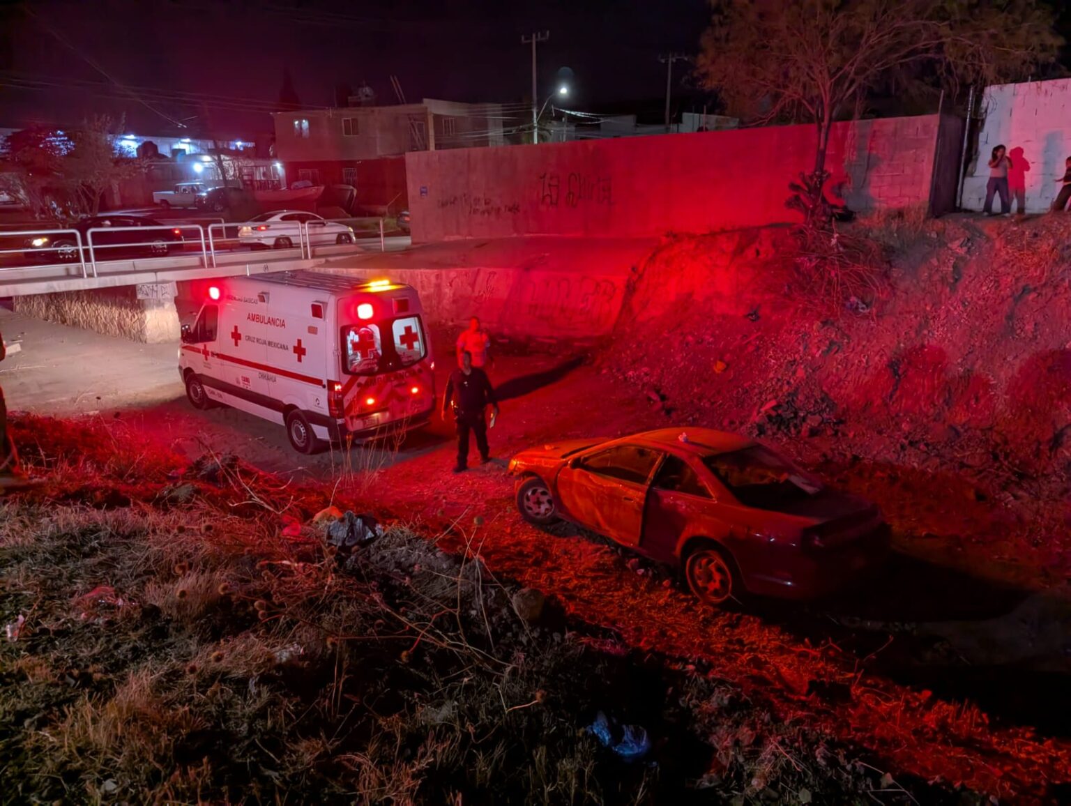 Una mujer resultó lesionada luego de que el vehículo que conducía cayó al fondo de un arroyo en la colonia UP, lo que generó la movilización de cuerpos de emergencia la noche de este domingo.