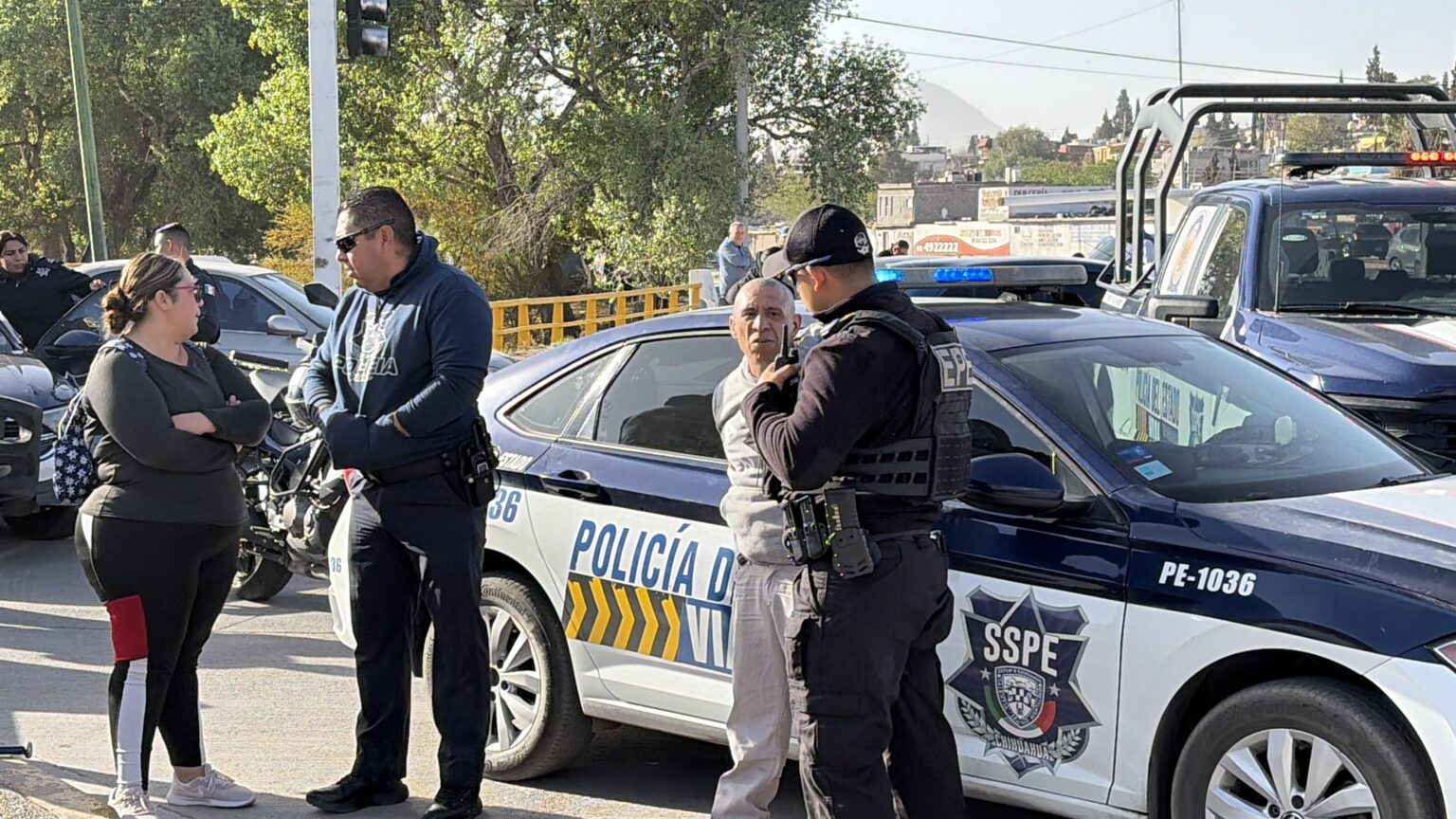 Tras varios minutos, el individuo, de aproximadamente 45 años de edad, fue sometido y detenido. Posteriormente, fue trasladado a las instalaciones de la Policía Vial para ser puesto a disposición de la autoridad correspondiente.