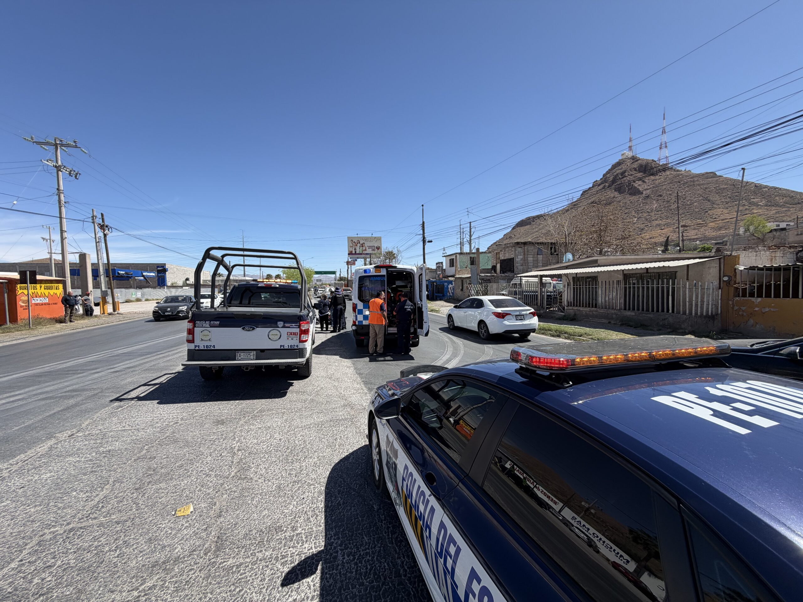 De acuerdo con la información recabada en el lugar, el incidente se originó cuando la conductora de una camioneta Dodge Ram le cerró la circulación al motociclista, provocando que este se impactara y saliera proyectado hacia los carriles contrarios de la vialidad.