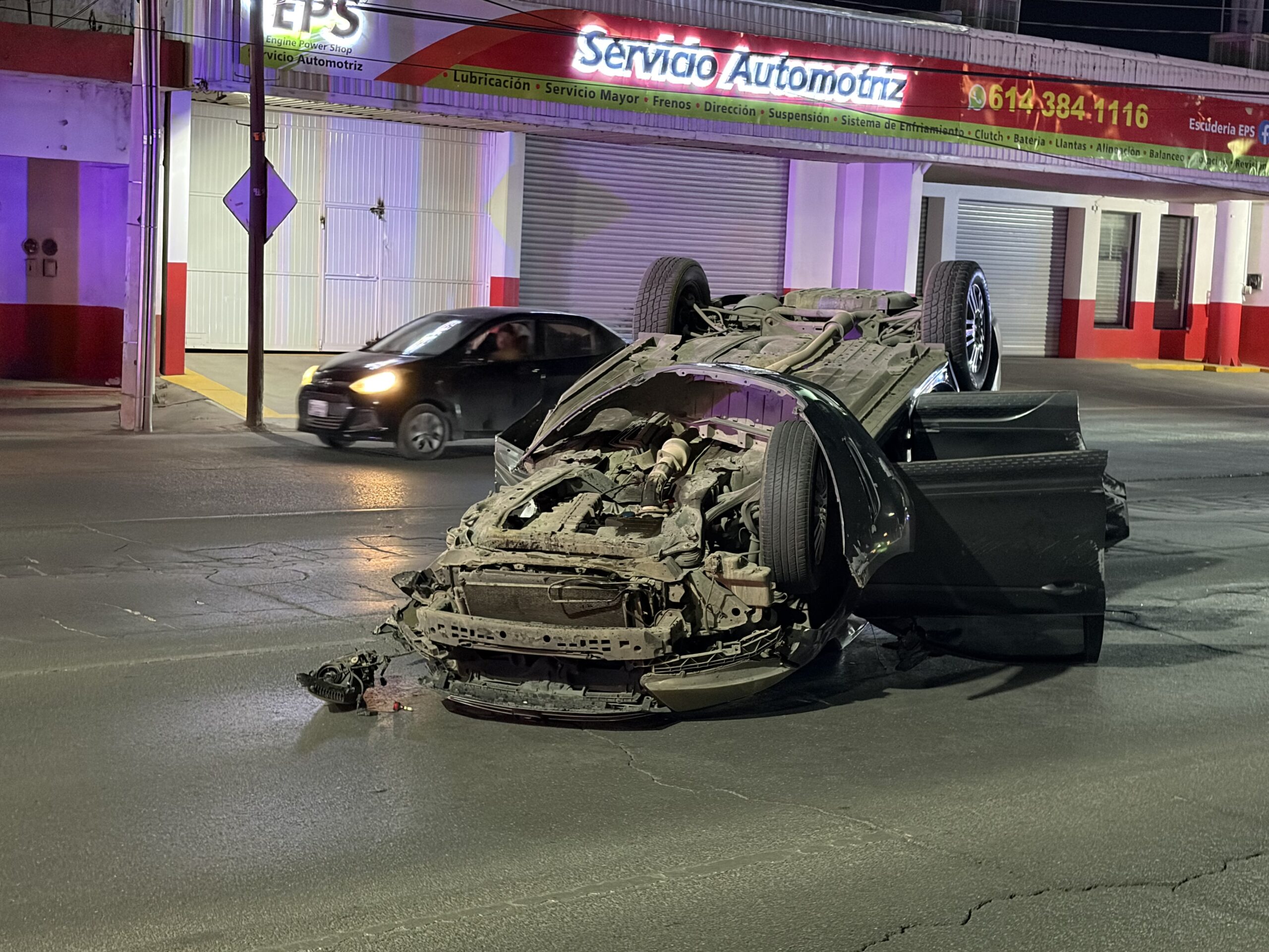 Chihuahua, Chih.— Durante la madrugada de este domingo se registró un aparatoso accidente vial con volcadura sobre el Periférico de la Juventud, casi en el cruce con Universidad de Morelos, en la colonia Universidad.