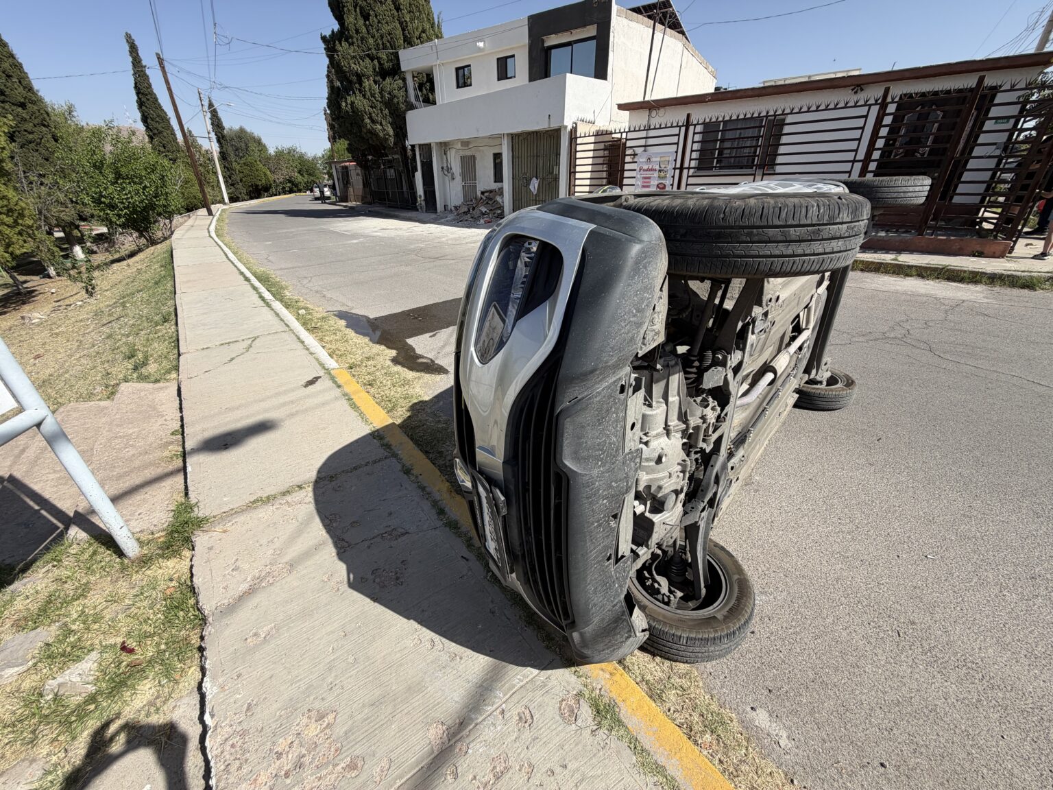 Un fuerte choque entre dos vehículos terminó en volcadura la tarde de este día en la colonia Unidad Tecnológico, luego de que uno de los conductores no respetara la señal de alto y escapara del lugar.