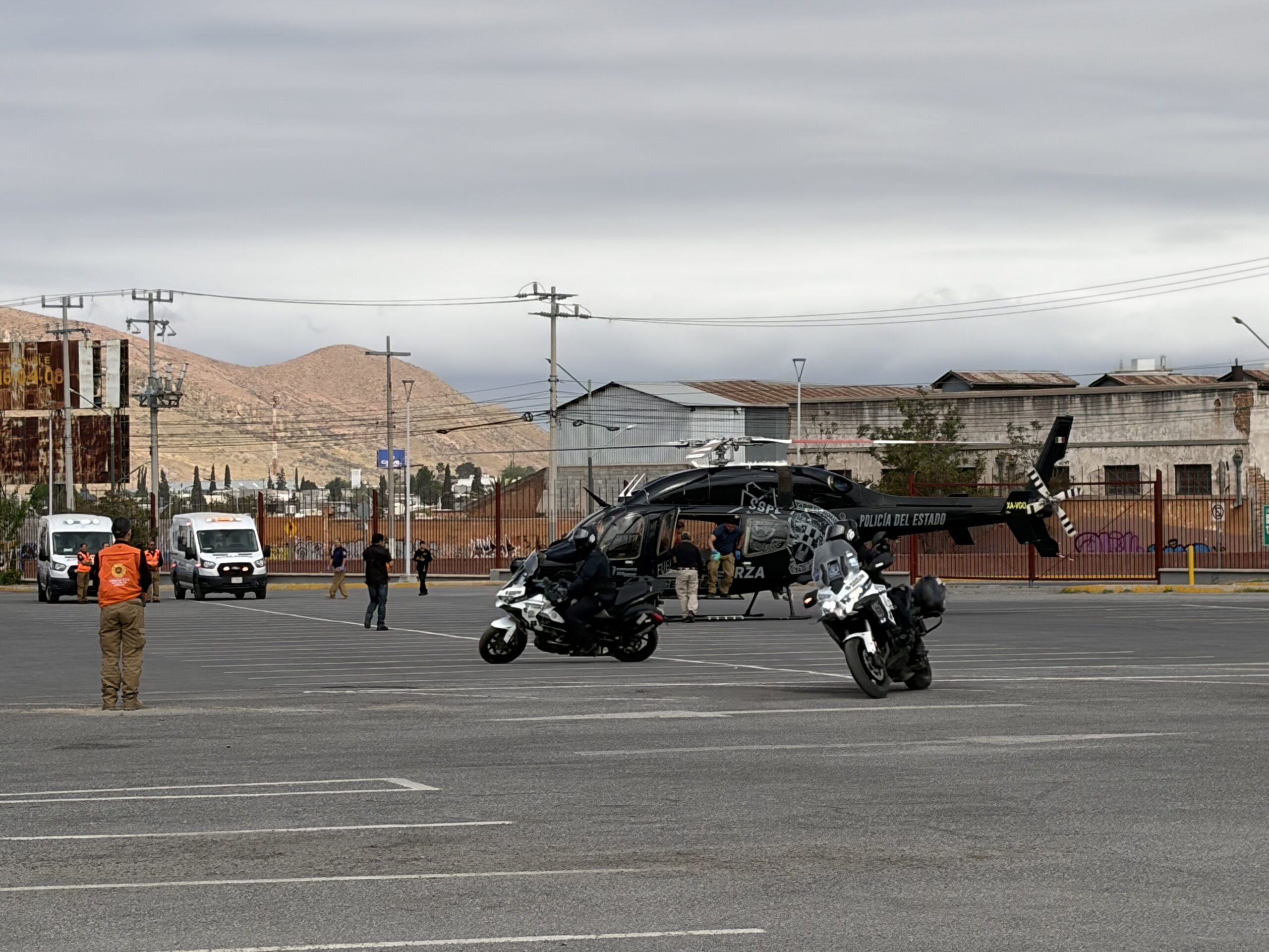 Para agilizar el traslado, la Secretaría de Seguridad Pública estatal dispuso de un helicóptero que aterrizó en el estacionamiento del Centro de Convenciones y Exposiciones, donde ya aguardaban ambulancias de URGE, además de paramédicos y personal de Protección Civil Estatal.