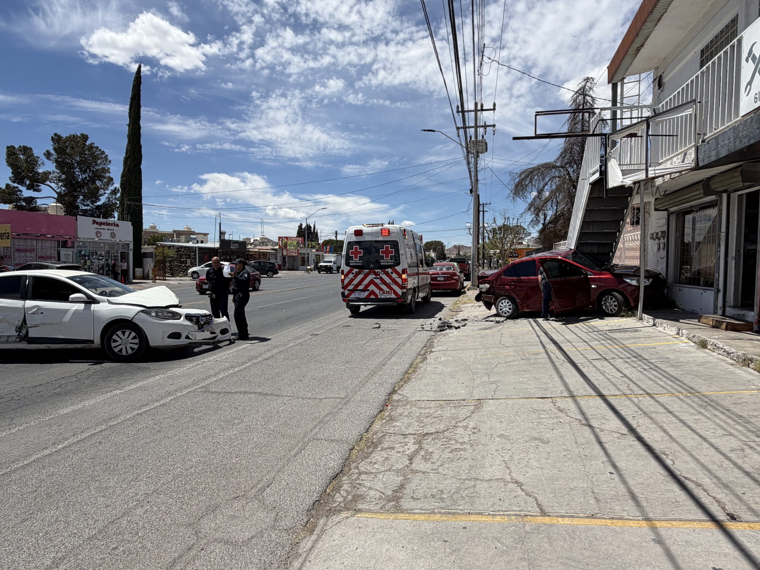 Según los primeros informes, la conductora de una camioneta Honda HR-V color gris, de modelo reciente, salía de una farmacia cuando cortó la circulación a un automóvil Renault blanco. Tras el impacto, este último vehículo perdió el control y terminó estrellándose contra un Chevrolet Aveo que se encontraba estacionado bajo una estructura metálica.