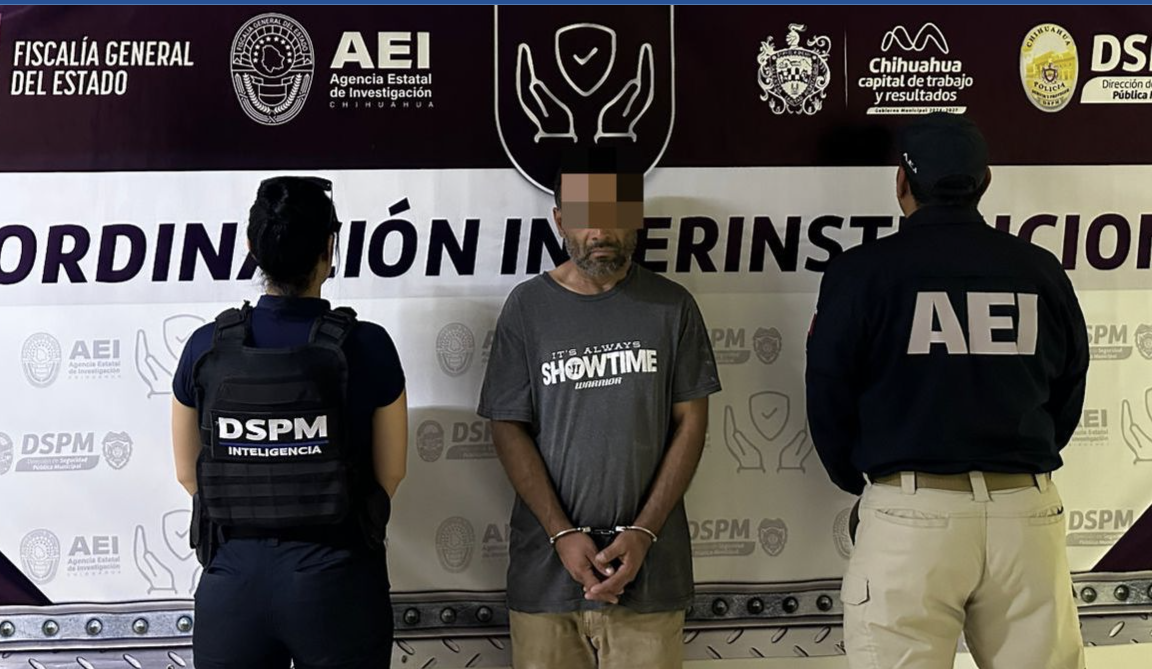 La captura se realizó en colaboración la Unidad de órdenes de aprehensión de la AEI y la Unidad de Género de la Dirección de Seguridad Pública Municipal; tuvo lugar esta noche en la colonia Los Arcos en la ciudad de Chihuahua y fue puesto a disposición del Tribunal, en el Distrito Judicial Morelos.