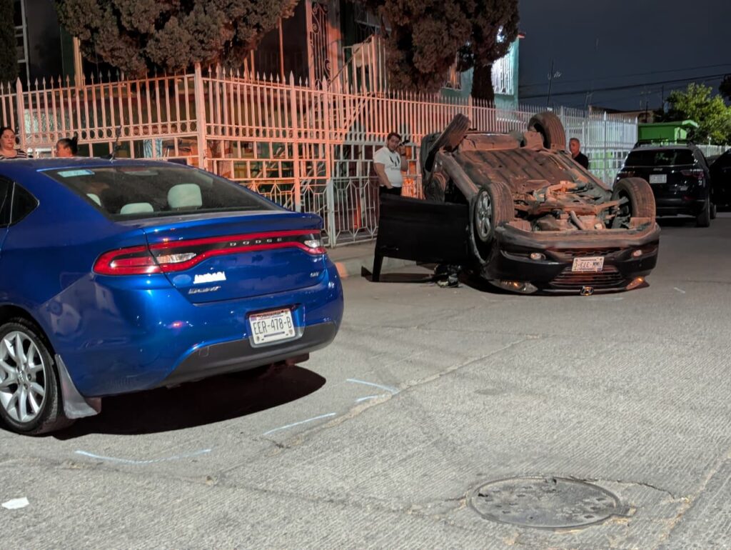 Un accidente vial se registró en el cruce de las calles Otilio Montaño y Jóvenes Vanguardistas, luego de que el conductor de una camioneta omitiera el alto y fuera impactado por otro vehículo, lo que provocó la volcadura de la unidad.