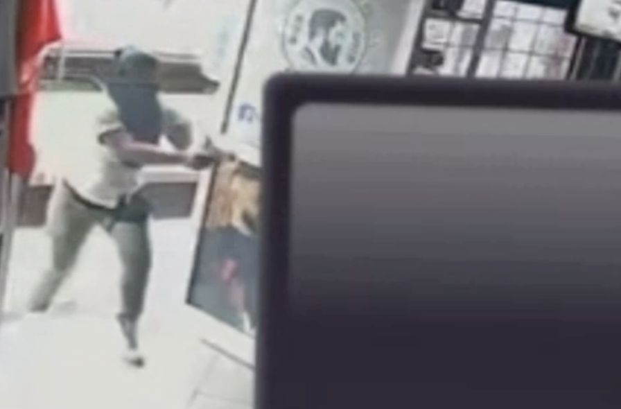 En otra grabación se aprecia el momento en que realiza las detonaciones hacia el interior de la barbería, donde se encontraban varias personas.