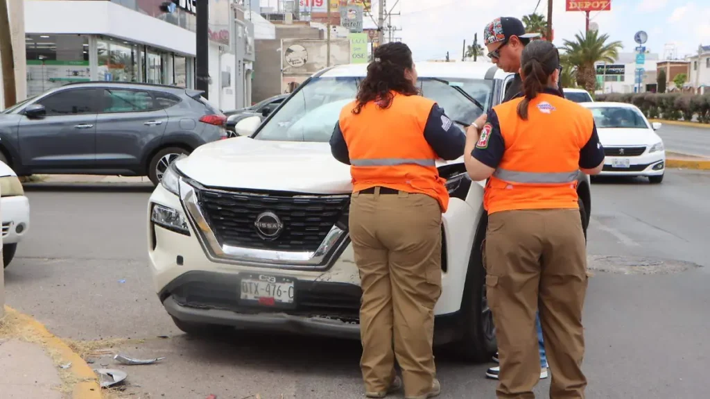 Chihuahua, Chih.— Un accidente vehicular registrado la tarde de este miércoles en el cruce del bulevar Ortiz Mena y calle Laguna de Hormigas, en la colonia San Felipe, generó movilización de cuerpos de emergencia y afectaciones a la circulación, dejando como saldo dos personas con lesiones leves.